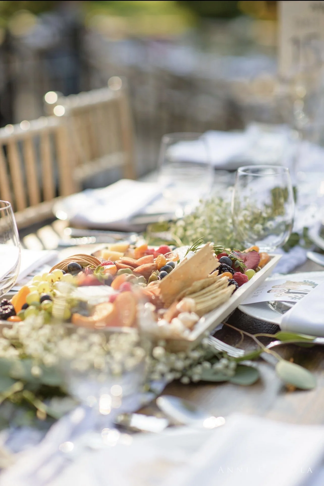(2-3 people) Two meats, two specialty cheeses, pickles, stuffed olives, a variety of fresh & dried fruits, chocolates, honey, seasonal jam, an assortment of nuts, & a variety of artisan crackers on a disposable tray.